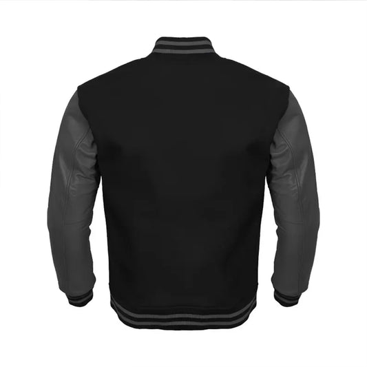 Mens Varsity Letterman Black Body Grey Sleeves Baseball Jacket Team Varsity Jacket