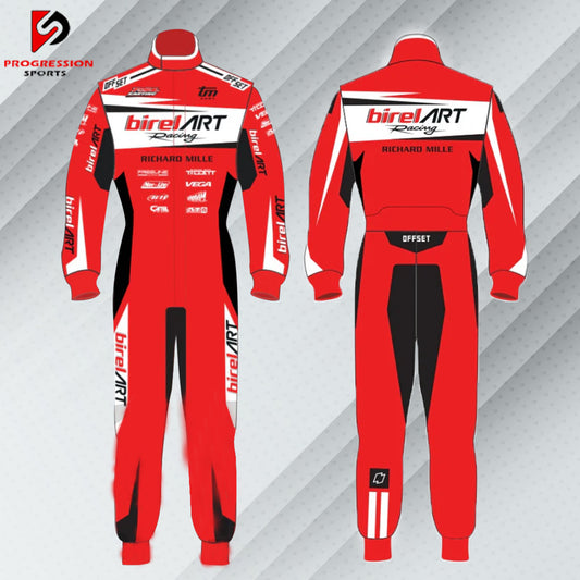 Enhance your performance with the high-quality BIREL ART go kart suits of Progression Race Wears. Our replica suits are based on safety, comfort, and a professional appearance with an inspiration of the official BIREL ART karting team. These suits will keep you cool as you race or doing kart racing as a hobby, they are breathable, durable and will be styled like a real team. The ideal car in the case of karting lovers who wish to shine on the track.