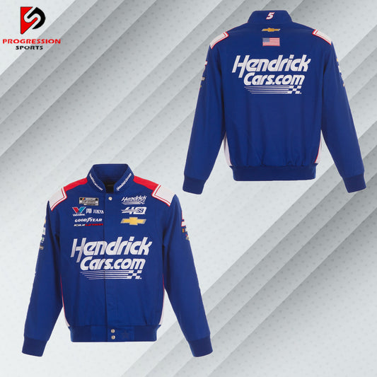 Men's JH Design Royal Kyle Larson Hendrick Cars Twill Driver Uniform Full-Snap Jacket