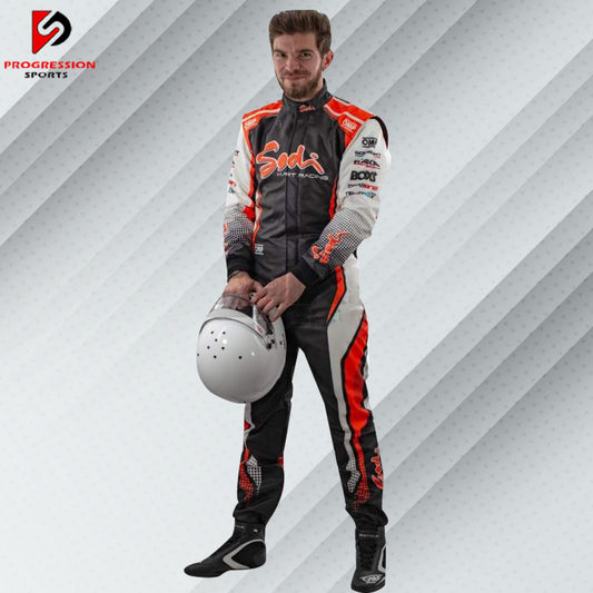 Progression Race Wears has SODI KART go kart suits that are track-ready. These suits are designed as protection, flexible and true to brand gear as they are modeled after the official SODI Racing Team gear. You are either a first-time driver or a veteran kart driver; our SODI KART suits will make you feel like you were on top in comfort and race-day appearance.