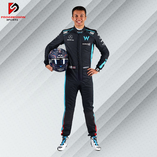 It is the opportunity to make upgrades on your F1 to a Williams F1 Racing Costume at Progression Race Wears. Do you happen to be an amateur driver? Then this F1 Racing Costume lets you express your love of one of the oldest teams in F1 history. It is designed to bring comfort and flexibility that is incredibly long-lasting and suitable to an occasional hot-lapping or track day. It has iconic Williams F1 Costume branding and you will look the part on or off the track. And with global free delivery, this racing F1 Costume of high performance will be in your doorstep.