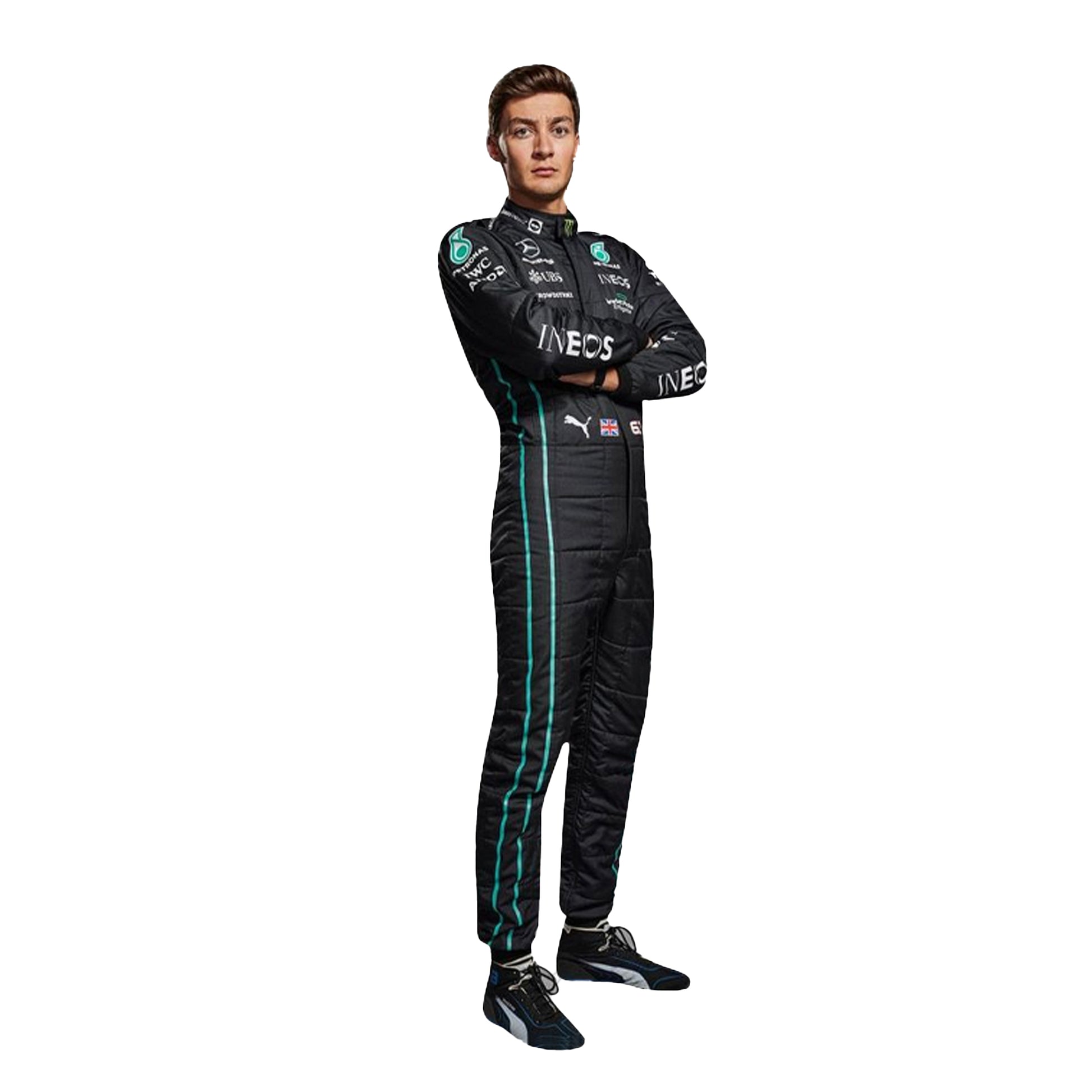 This expertly crafted F1 costume is a detailed replica of the race suit worn by George Russell during the 2022 F1 season with Mercedes F1 Team. Whether you're heading to a Grand Prix, karting session, or cosplay event, this F1 suit delivers the perfect mix of comfort, accuracy, and fan dedication.