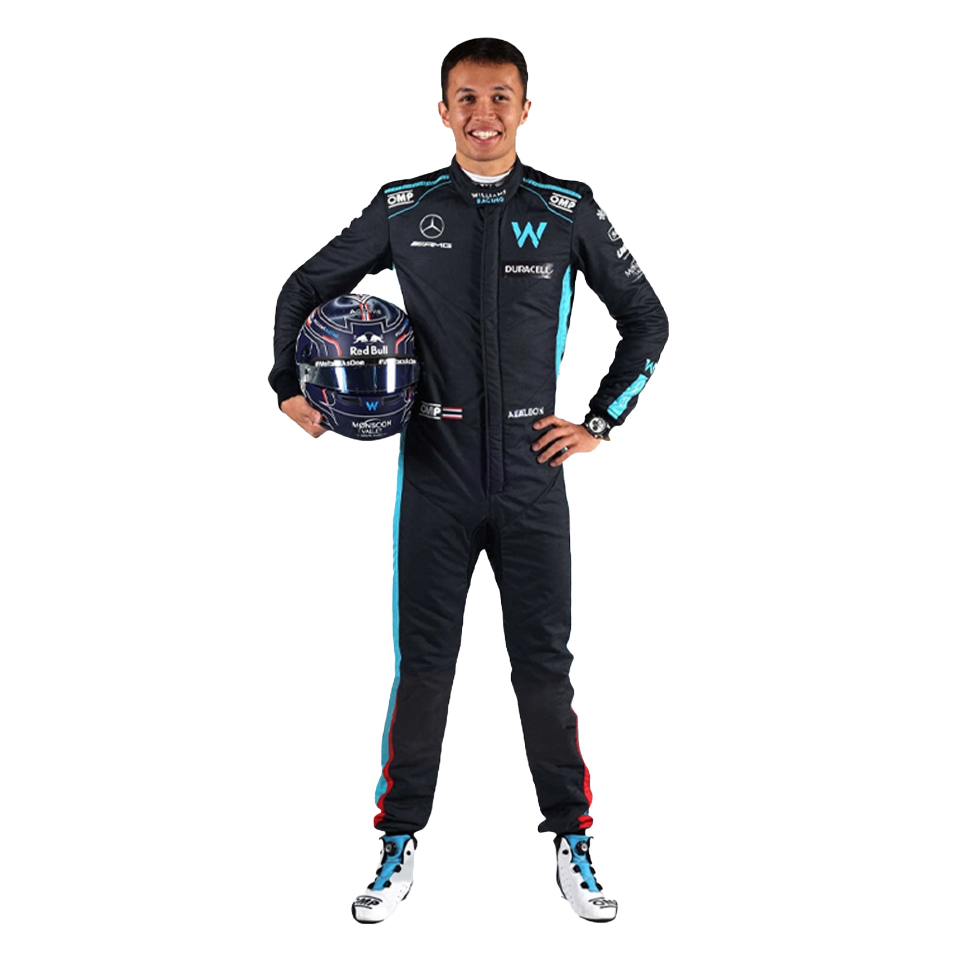 This expertly crafted F1 costume is a detailed replica of the race suit worn by Alexender Albon during the 2022 F1 season with Williams F1 Team. Whether you're heading to a Grand Prix, karting session, or cosplay event, this F1 suit delivers the perfect mix of comfort, accuracy, and fan dedication.