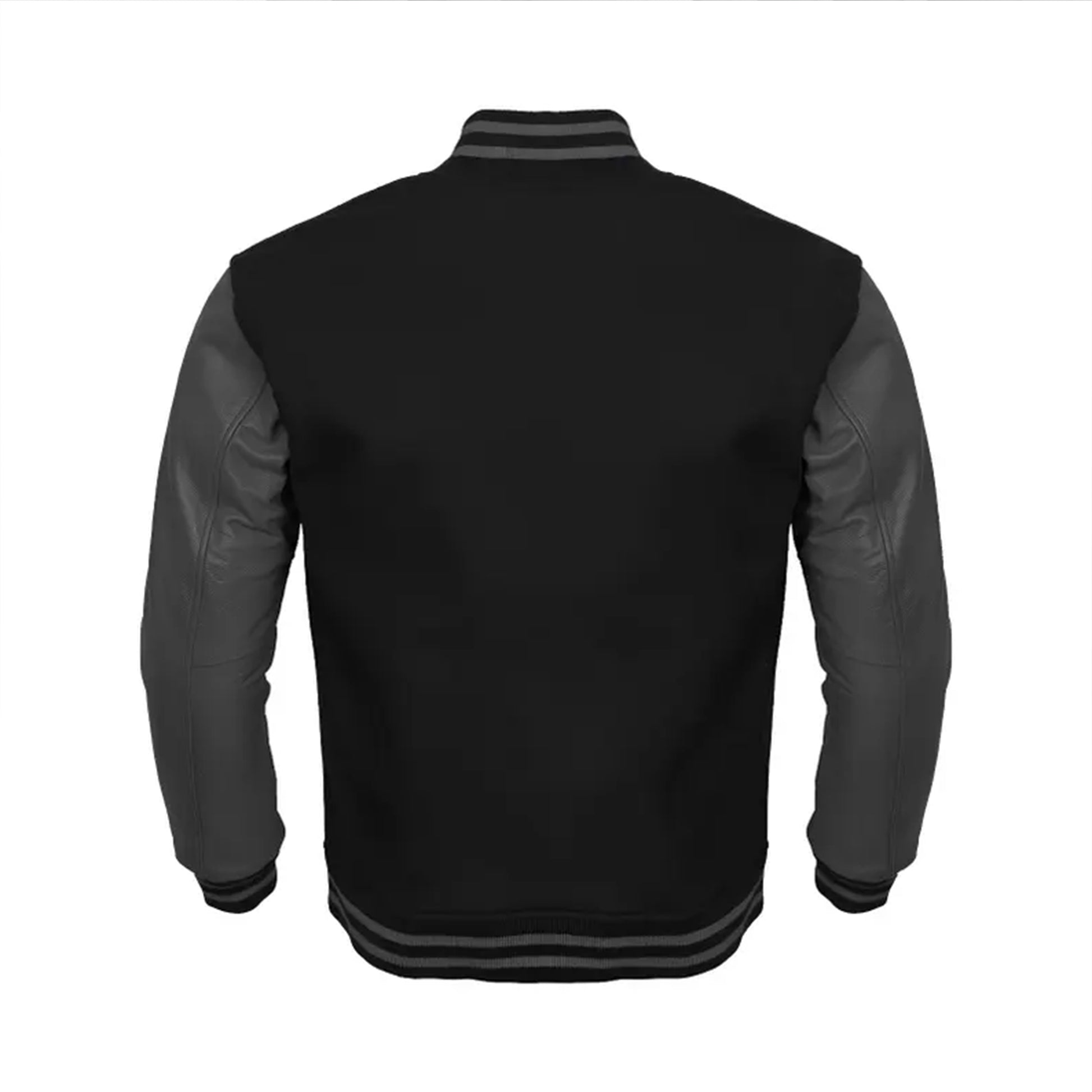 Men's Varsity Letterman Black Body Grey Sleeves Baseball Jacket Team Varsity Jacket