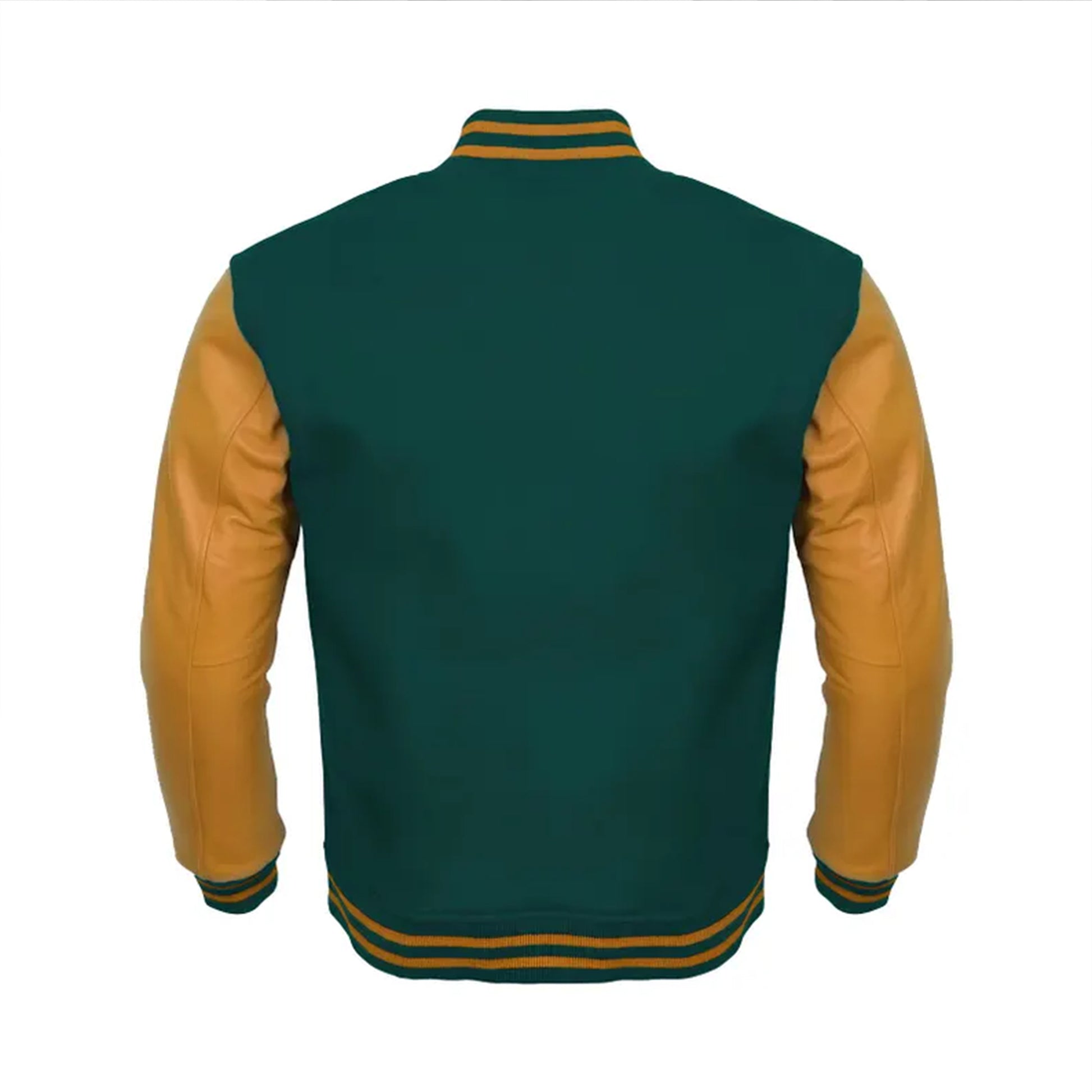 Mens Varsity Letterman Green Body Mustard Yellow leather Sleeves Baseball Jacket Team Varsity Jacket